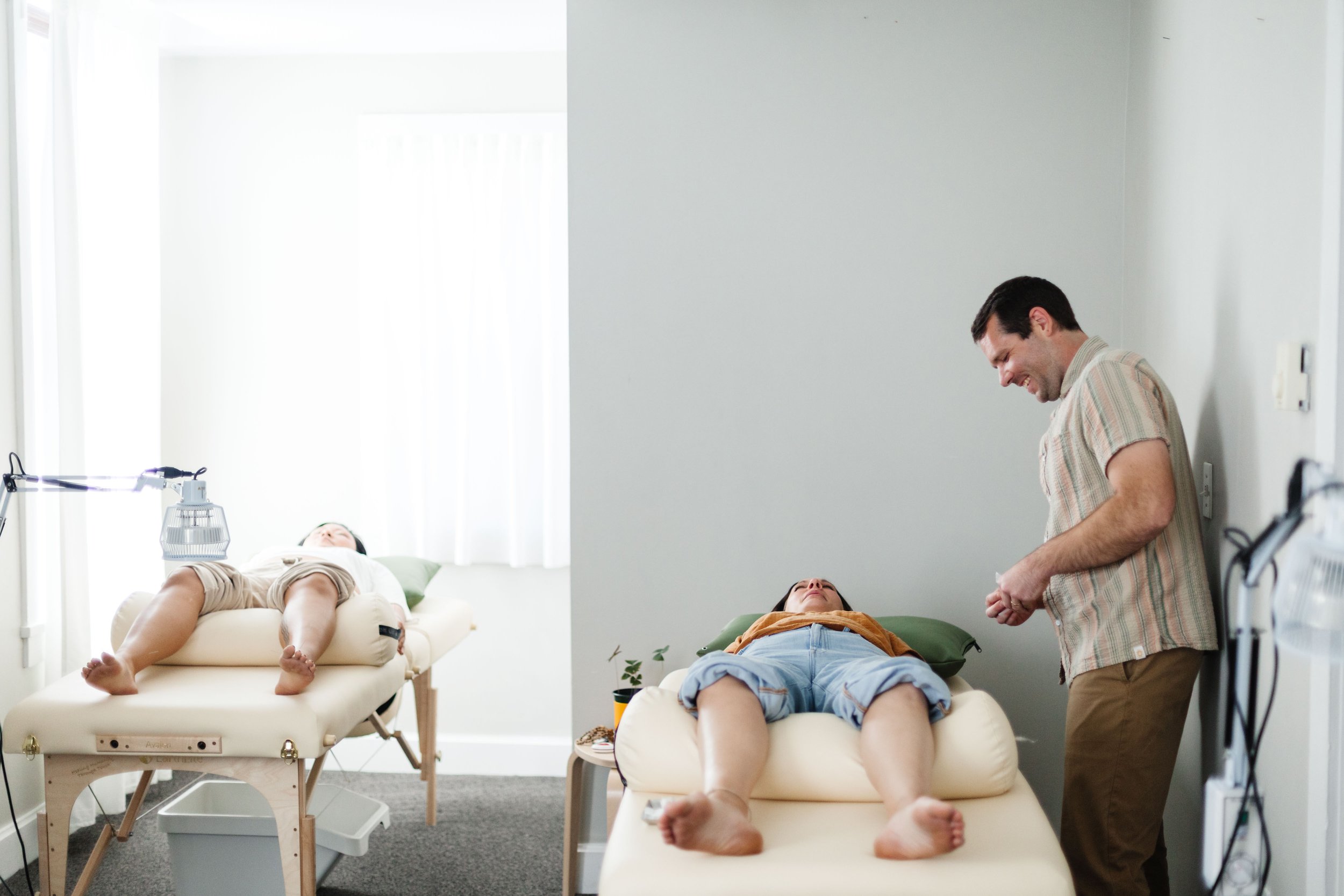 • You’ll rest in our cozy community room: infrared heat, calming music, and all. While we tailor care to your body and your goals.